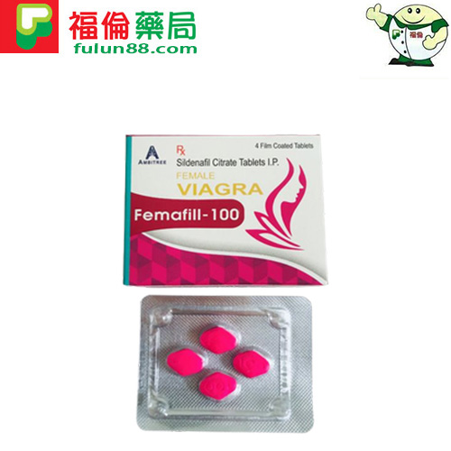 該款Femafill-100由印度Ambitree安必成製藥出品,每盒4粒。每粒含有西地那非100毫克(專為女性研發,不可與男性西地那非混用,切記)。藥效長達8-12小時,俗稱女偉哥、偉妹,服用本品後需在性刺激下才能發揮作用。
